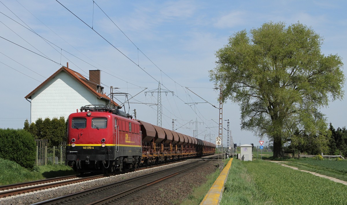 140 495 fuhr am 17.4.14 mit einem leeren Autozug durch Ahlten.