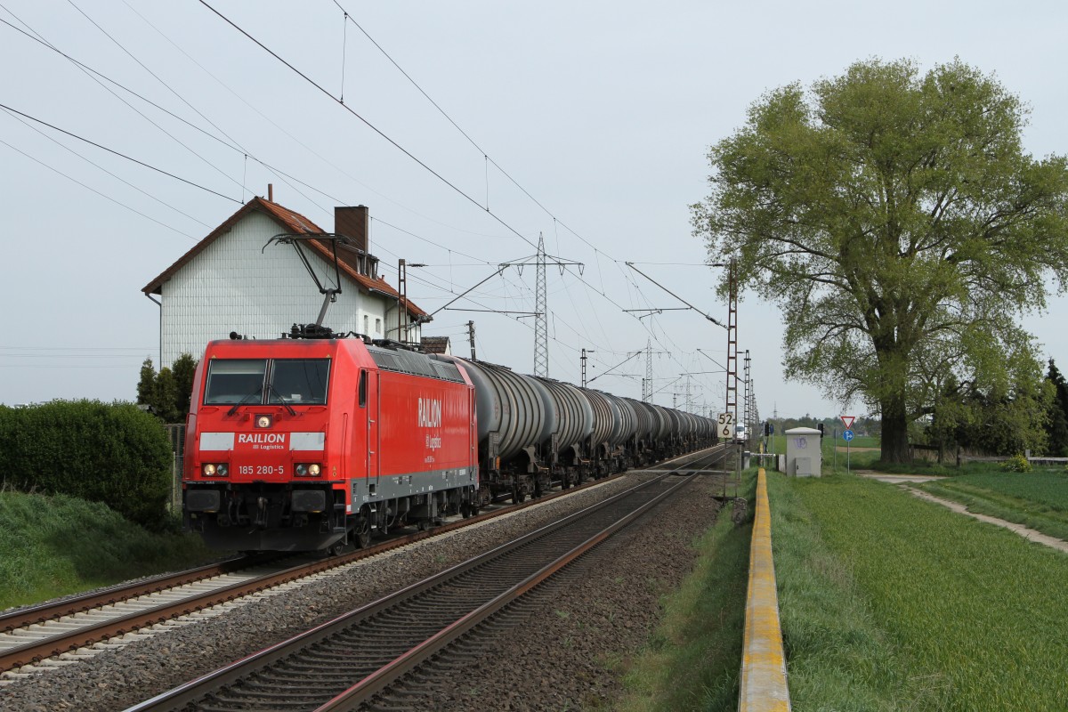185 613 mit einem Gaskesselzug am 24.04.2014 bei Langenisarhofen.
