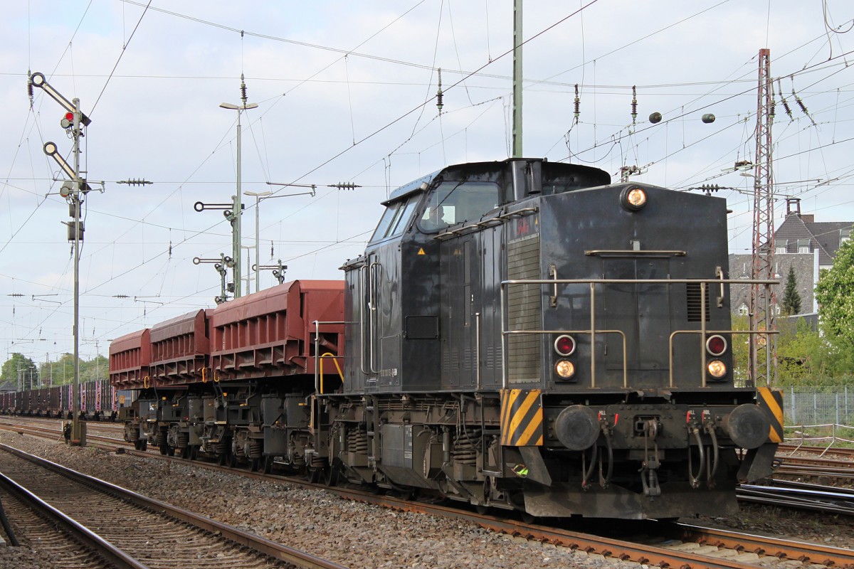 203 152 fuhr am 15.4.14 mit drei Schotterwagen durch Düsseldorf-Rath.