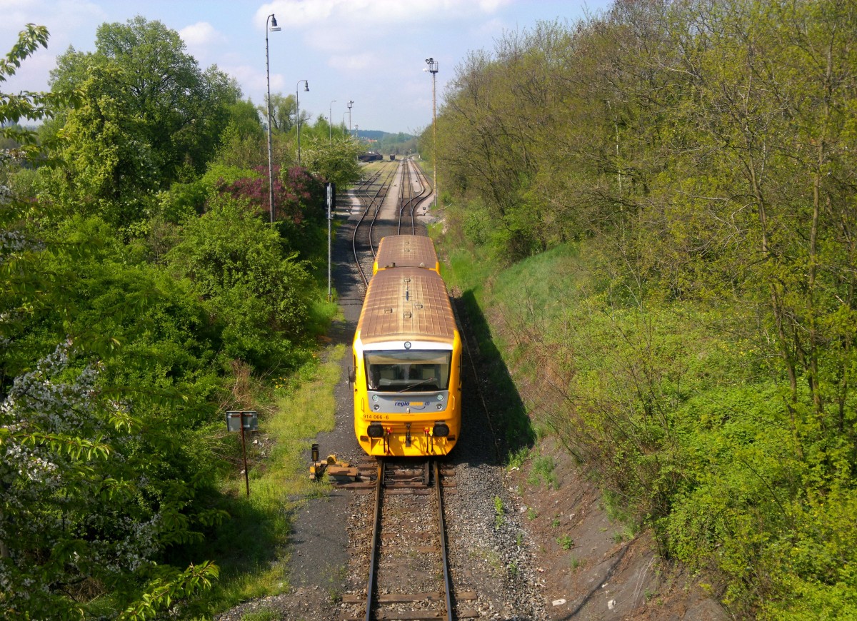 CD 914 066-6 verlässt den Bahnhof Kladno Dubi in Richtung Kralupy am 25. 4. 2014