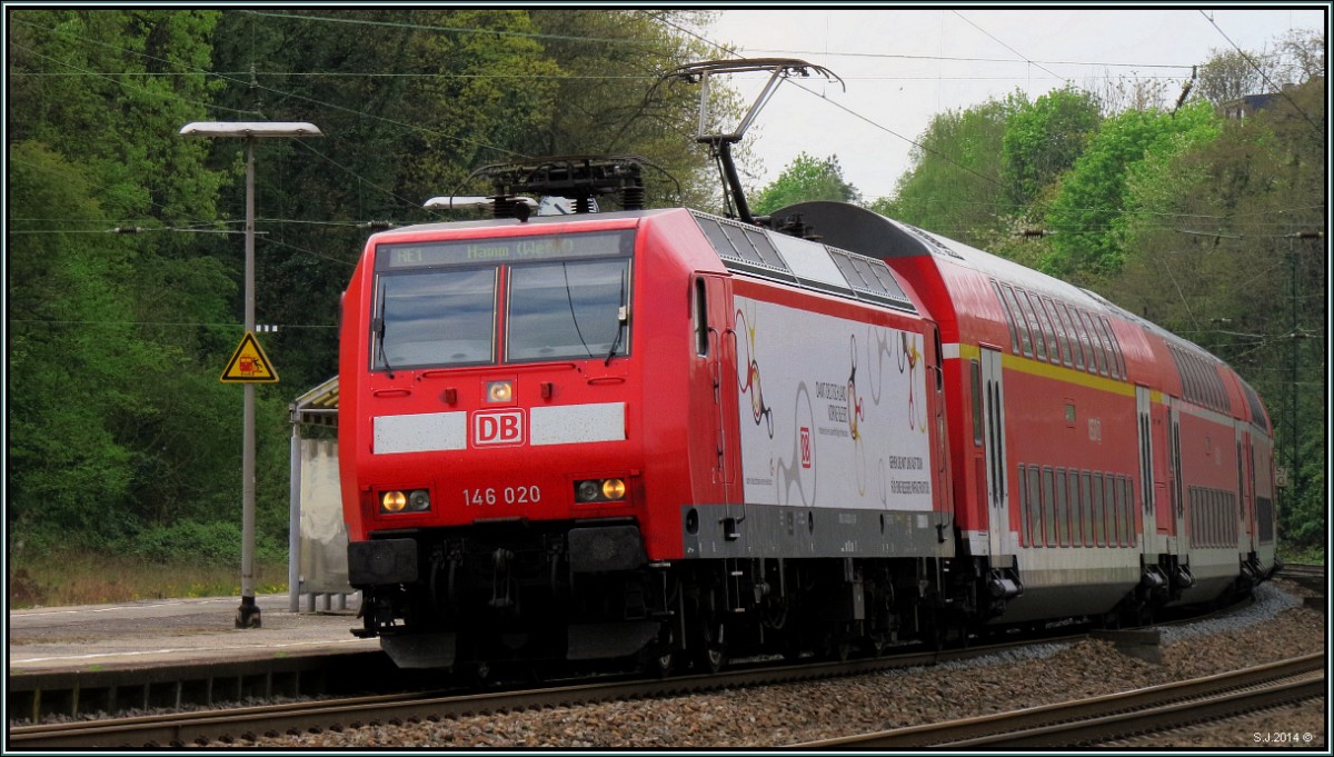 Als Zugpferd dient die 146 020 mit aktueller DB Werbeaufschrift.