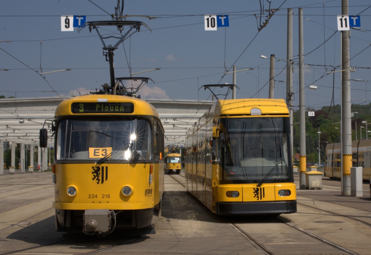 Dresdner Straßenbahnnetz "tatrafrei" hieß es vor einiger Zeit , nun sind wieder einige im Linienbetrieb im Einsatz, in der Kombination : TW+TW+TW.