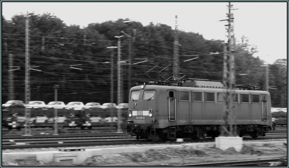 Hier huscht ein seltenes Exemplar einer Altbaulok durchs Bild. Die 140 539-8 als Mitzieher erwischt in Aachen West im Herbst 2013.