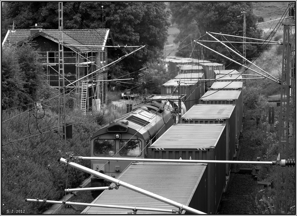 SŽ 363-008 zieht Containerzug durch Maribor-Tabor Richtung Koper Hafen. /23.4.2014