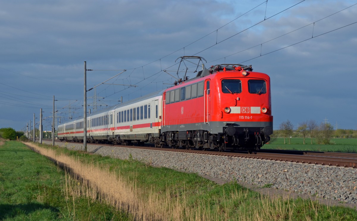 Seit dem kleinen Fahrplanwechsel am 12. April ist die Bespannung des IC 2238/2239 mit BR 115 Geschichte. Zwei Tage vor Ende der Bespannung mit E10 führte 115 114 den IC 2238 durch Braschwitz nach Magdeburg.