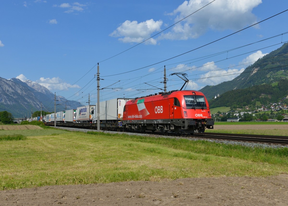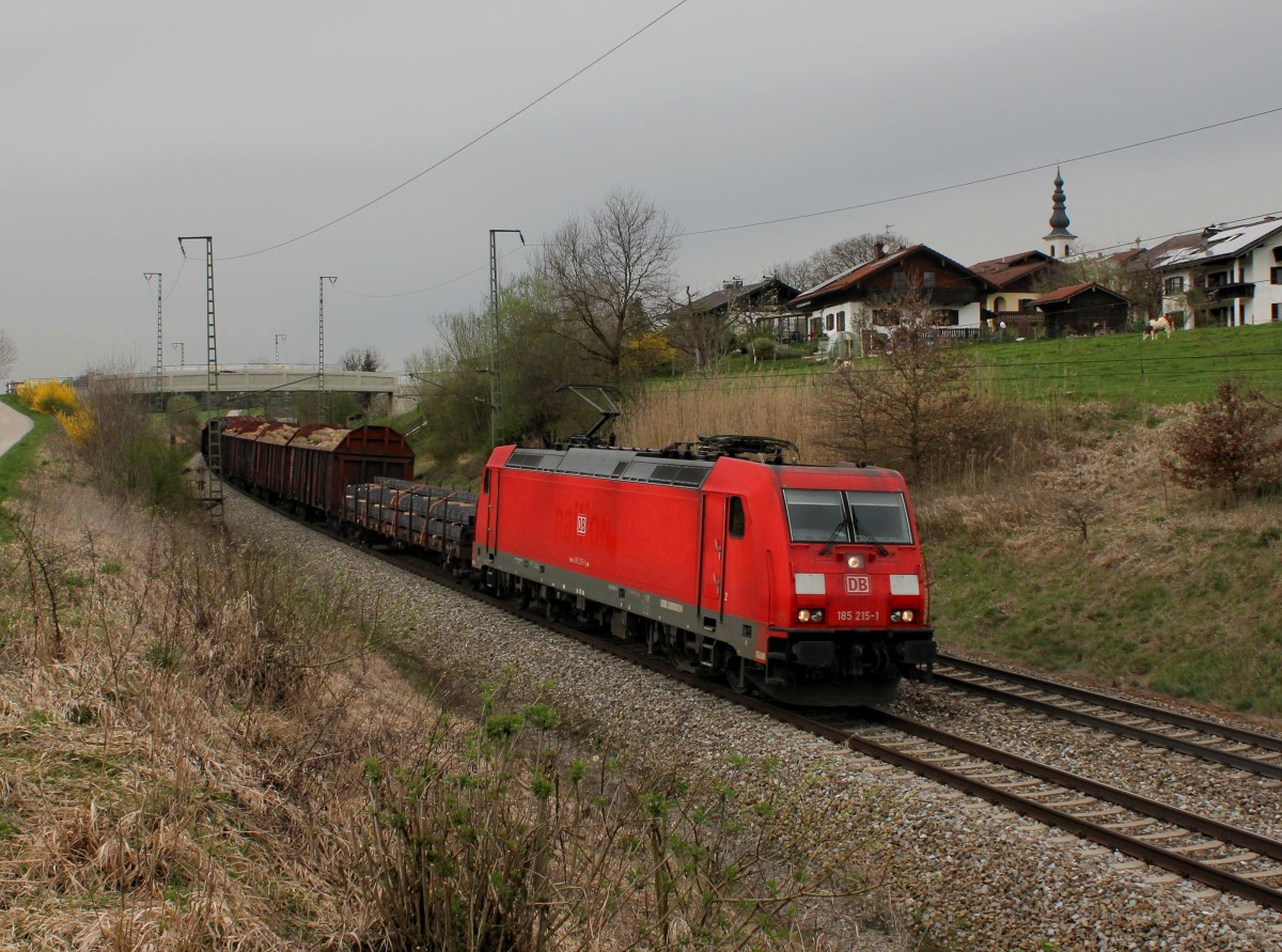 Die 185 215 mit einem Güterzug am 04.04.2014 unterwegs bei Straß.