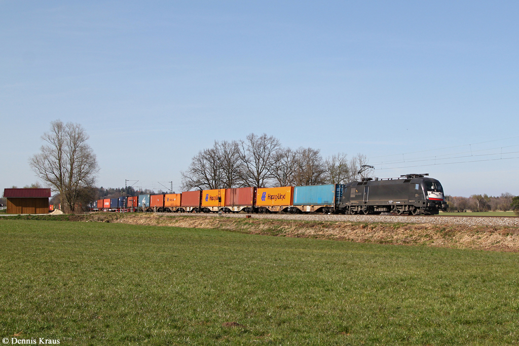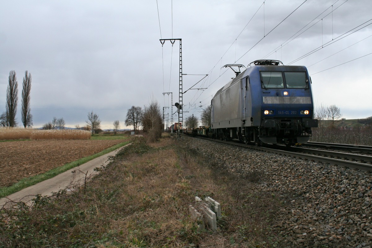 145-CL 202 mit einem KLV-Zug gen Süden am Nachmittag des 28.02.14 in Müllheim (Baden).