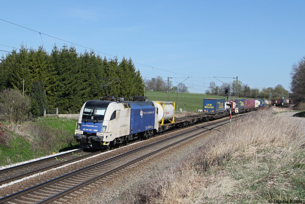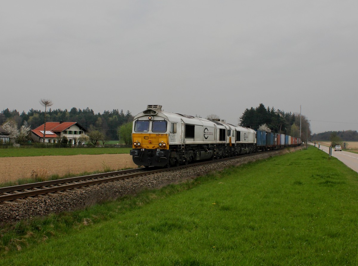 Die 247 051 und die 247 038 mit einem Containerzug am 04.04.2014 unterwegs bei Pirach.