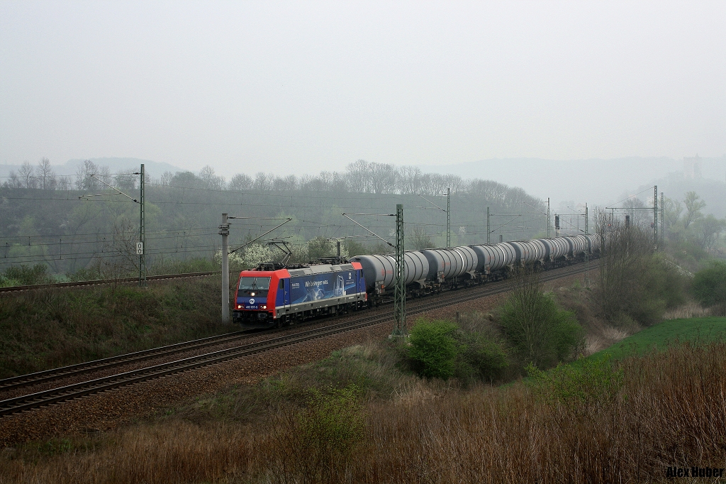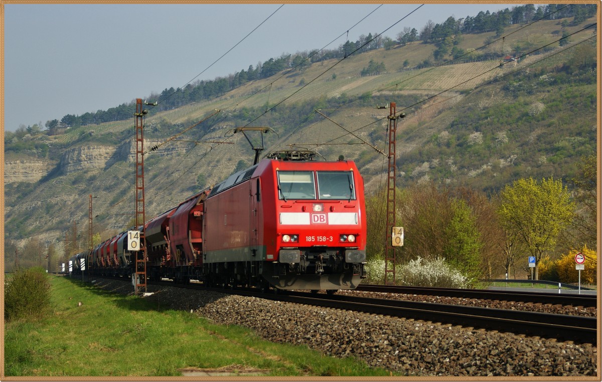 185 158-3 am 01.04.14 mit einen Kalizug bei Thüngersheim.