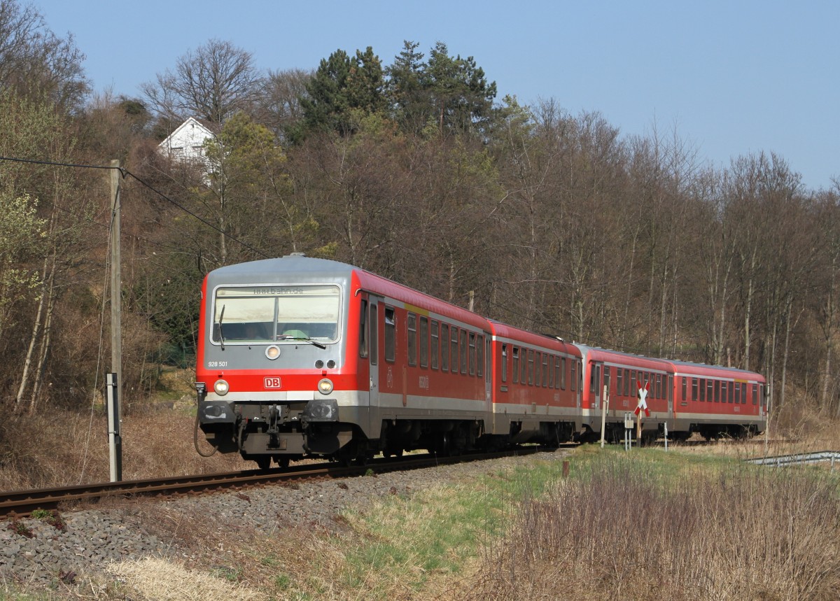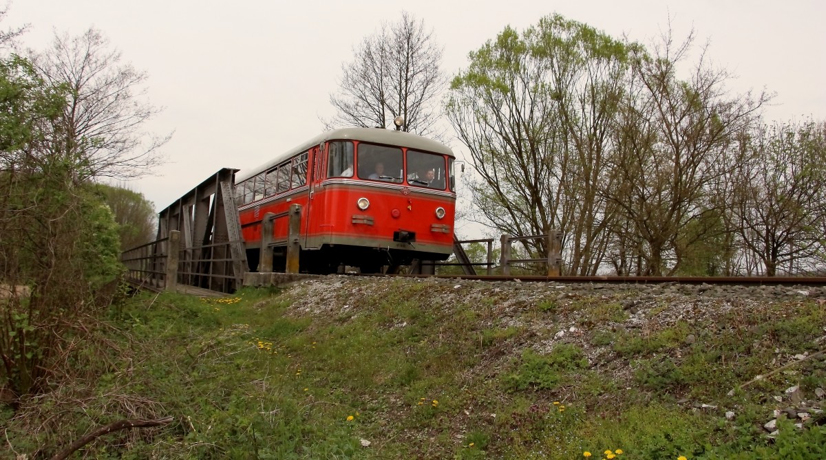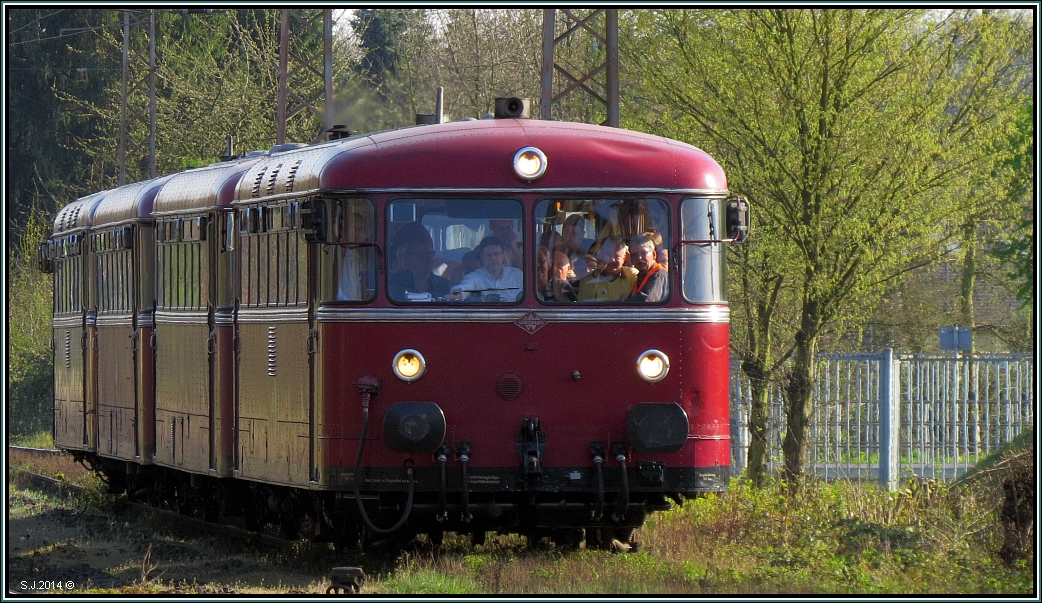 Auf einer Sonderfahrt unterwegs,dieser vierteilige Schienenbus beim kurzen Aufenthalt in Ratingen Lintorf am 29.März 2014.