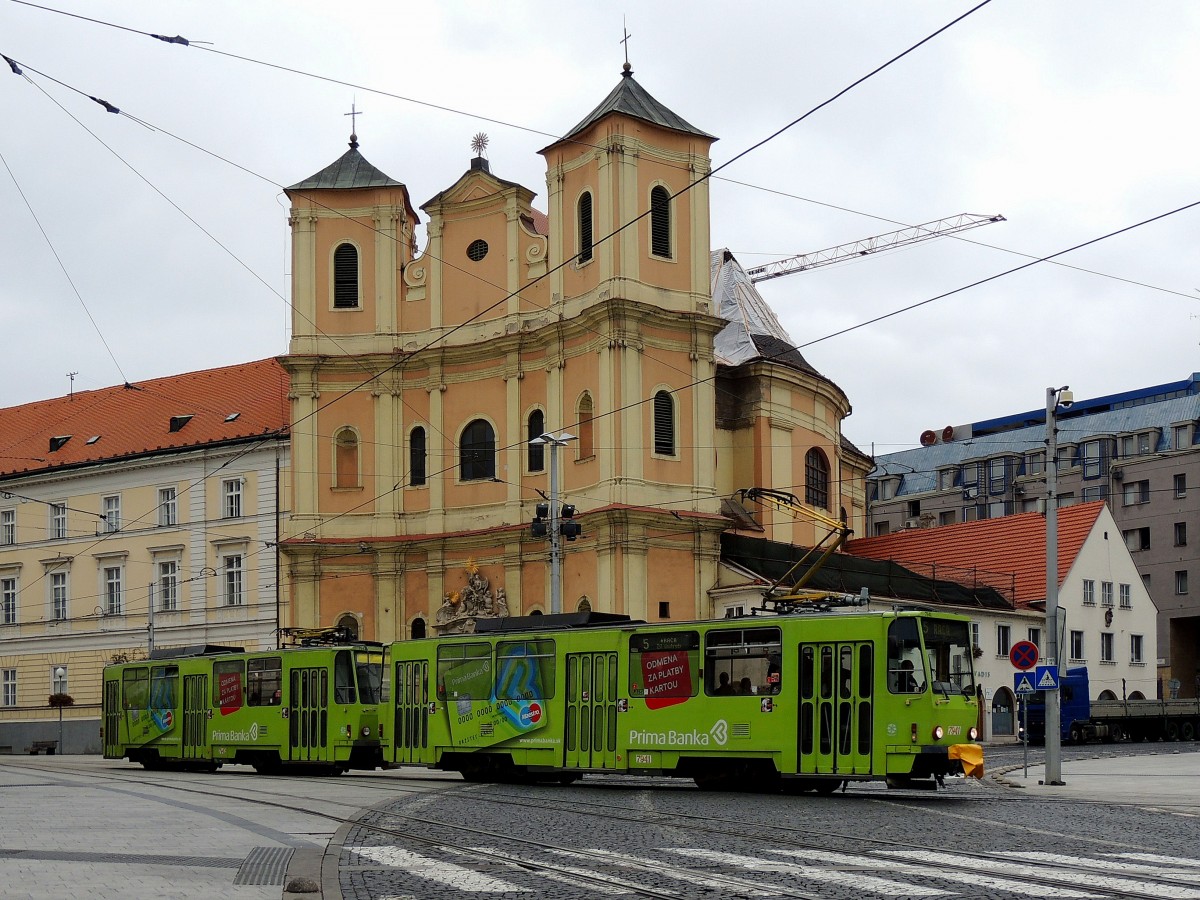 7941 und 7942 sind auf der 1000mm Spur in Bratislava Richtung als Linie 5 Richtung RACA unterwegs; 130828