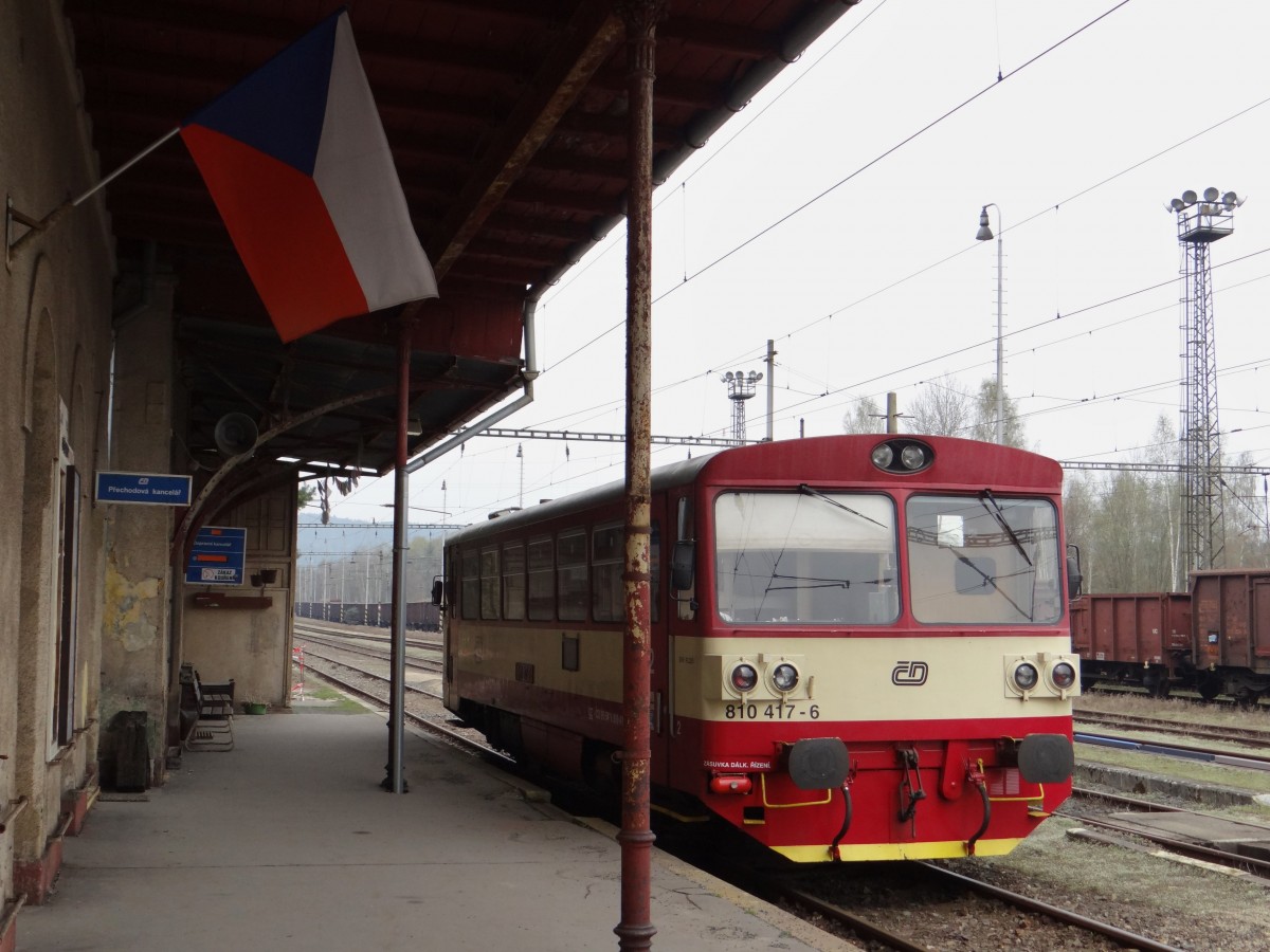 Am 05.04.14 fand der VBG Ersatzverkehr zwischen Cheb und Plesna statt. Hier 810 417-6 in Vojtanov..