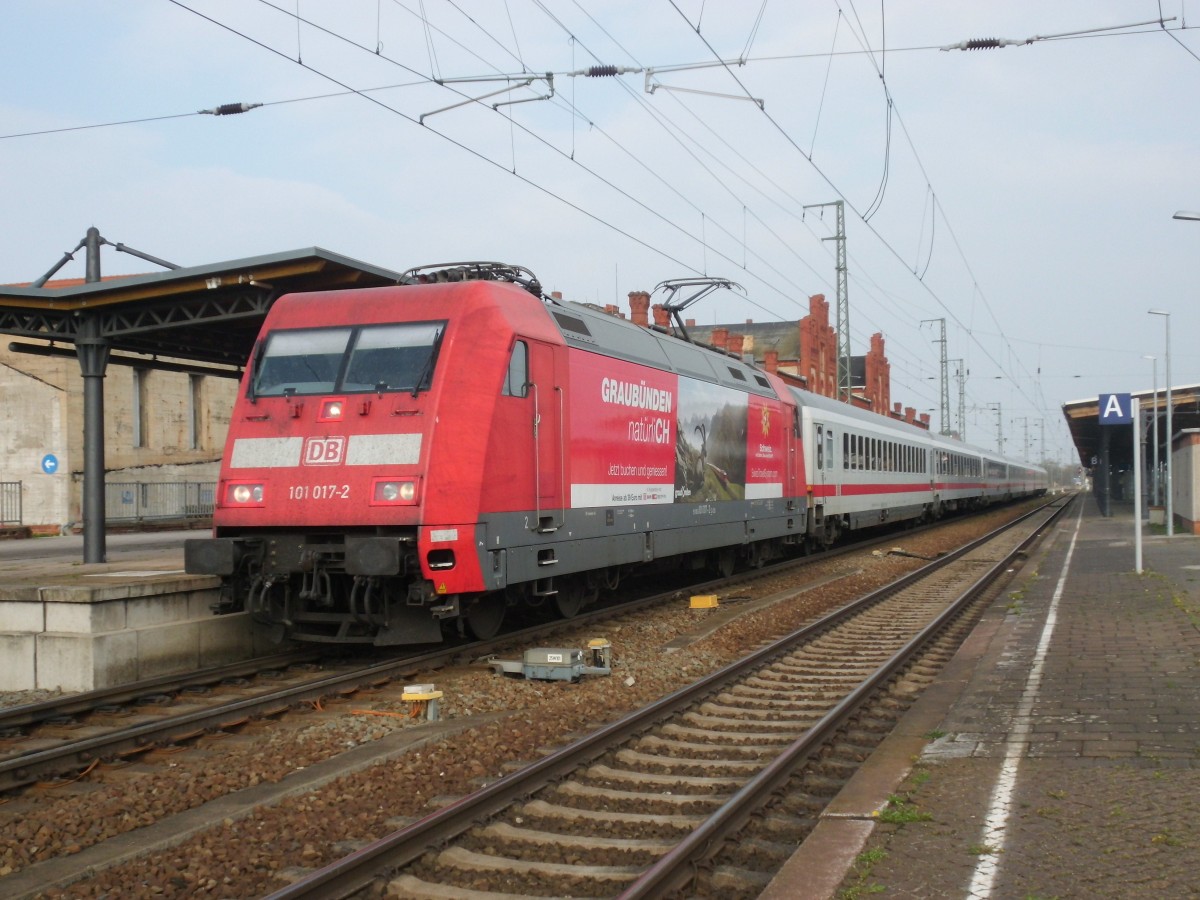 120 113-6 mit dem IC 1919 von Dresden Hbf nach Köln Hbf, bei der Durchfahrt in Rathenow. 06.04.2014