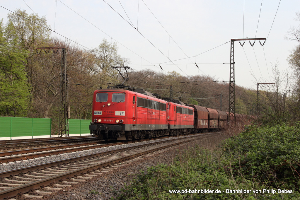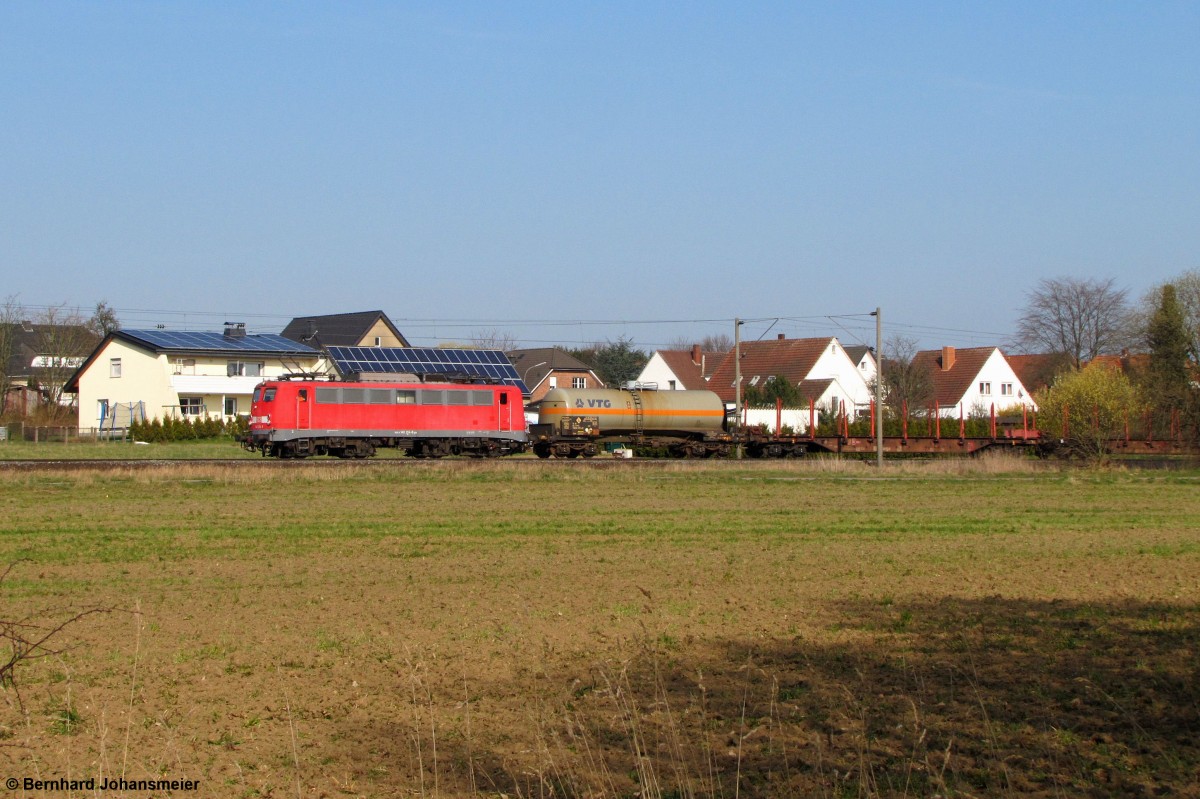 Die 151 150 mit einem Müllzug am 04.04.2014 unterwegs bei Straß.