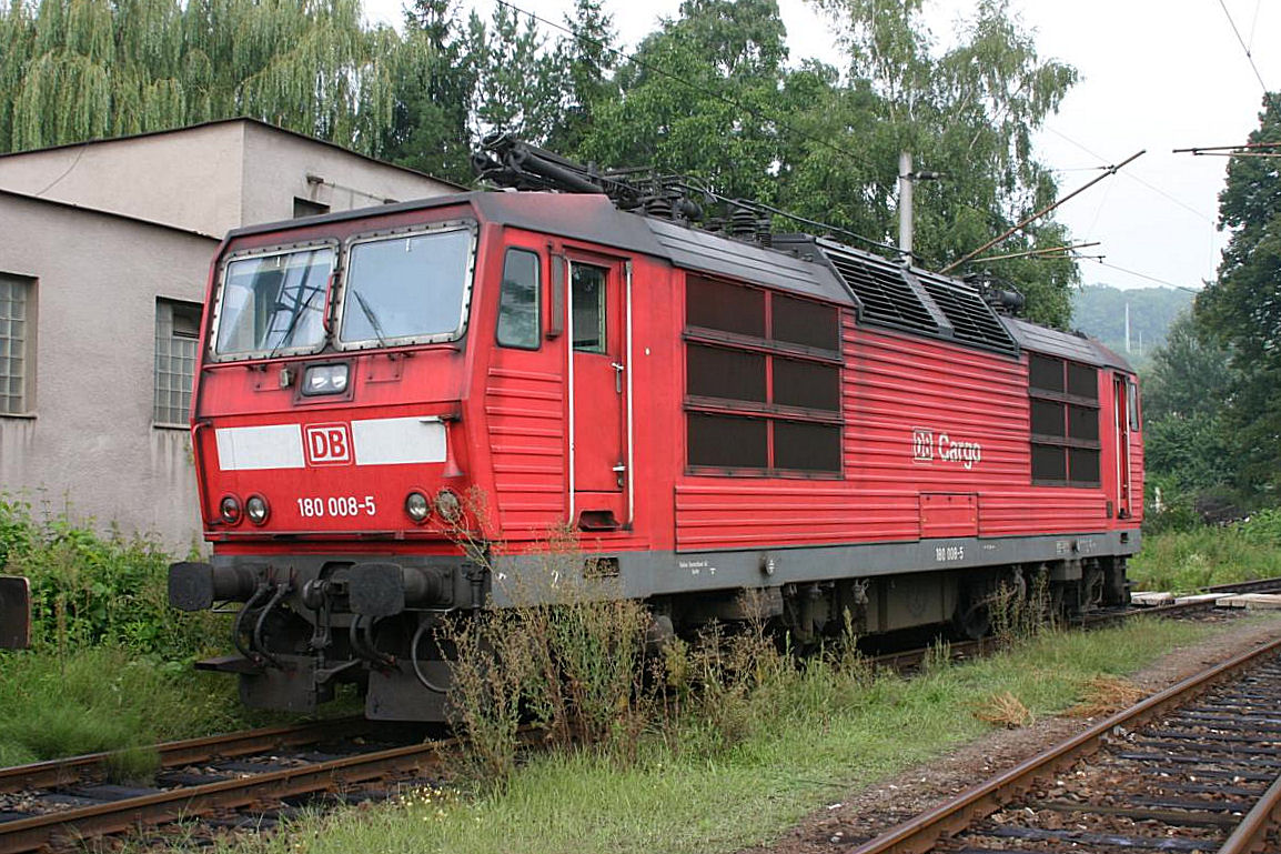 Bis tief nach Tschechien ist diese DB Railion 180008 gekommen. Am 21.8.2005 stand sie in der nordwestlichen Einfahrt des Bahnhof Kutna Hora.