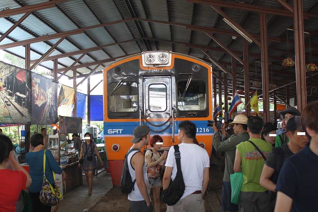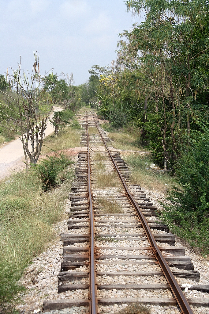 Der Zustand der Strecke der Mae Khlong Line verschlechtert sich immer mehr. Zur Zeit ist die ganze Strecke, mit Ausnahme eines ca. 500mm langen Abschnittes, eine einzige Langsamfahrstelle mit 20 Km/h. Dies führte zur Streichnung eines Zugpaares und Verlängerung der Fahrzeit der restliche 3 Zugpaare von 60 auf 100 Minuten. Im Bild vom 21.März 2014 erkennt man der Streckenzustand zwischen den Haltestellen Ked Muang und Lad Yai.