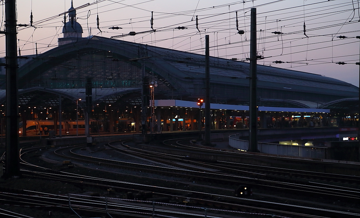 Die südliche Einfahrt des Kölner Hauptbahnhofes, aufgenommen am Abend des 13.03.2014.