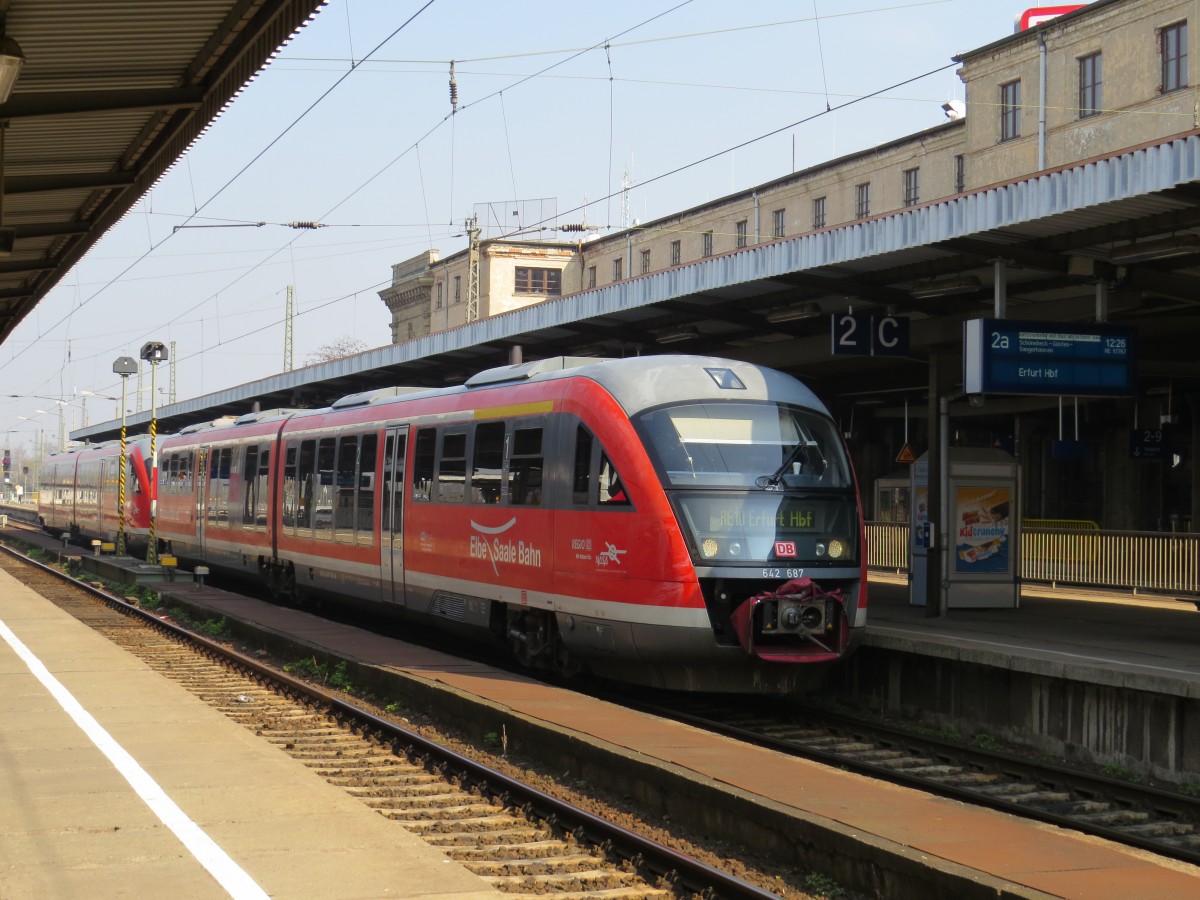 RE aus Eisenach bei der Einfahrt in den Bahnhof von Halle Saale HBF am 04.04.2014