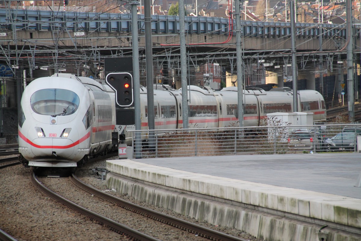 Einfahrt eines leider unbekannt gebliebenem ICE3 bei der Einfahrt in Liège Guillemins am 13.1.14