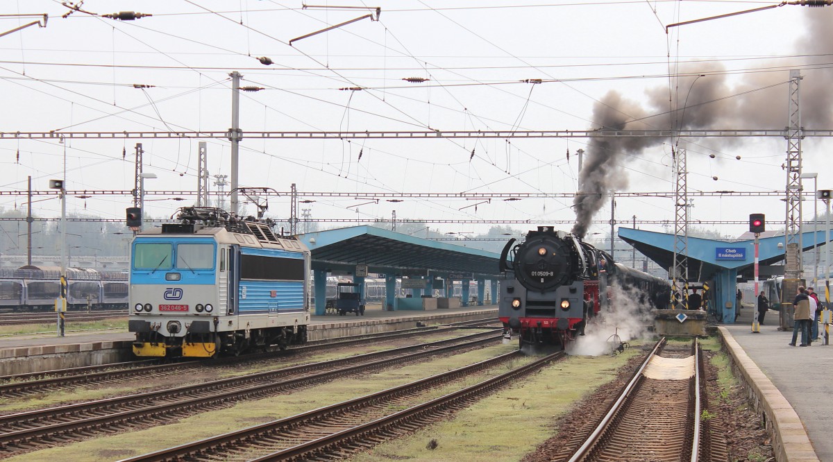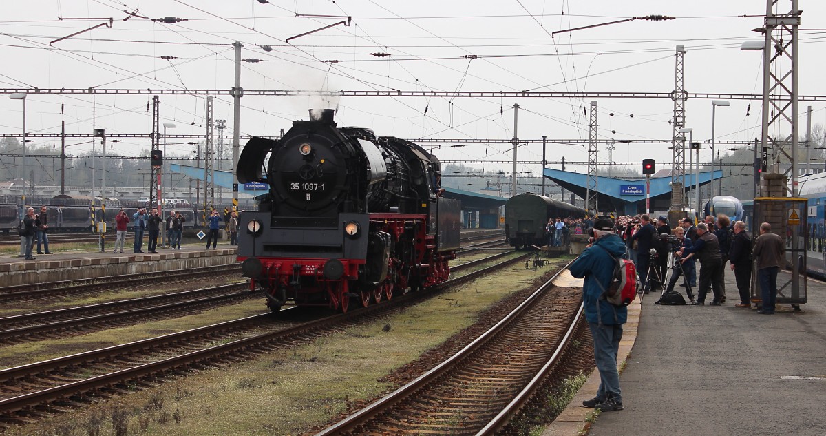 Erzgebirgsrundfahrt mit 01 509 und 23 1097 am 05.04.14 über Cheb. Hier zusehen in Chotikov.