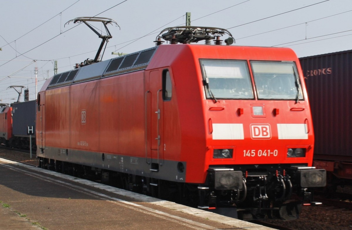 Hier 145 041-0 als Lz, bei der Durchfahrt am 29.3.2014 durch Berlin Schönefeld Flughafen, in Richtung Genshagener Heide.