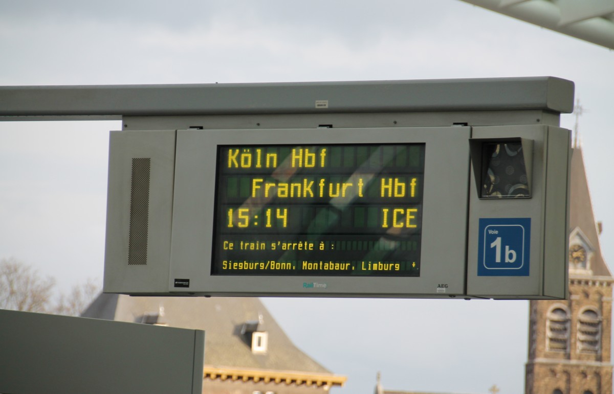 Hier die Anzeige eines ICE nach Frankfurt am 13.1.14 im Bahnhof Liège Guillemins.