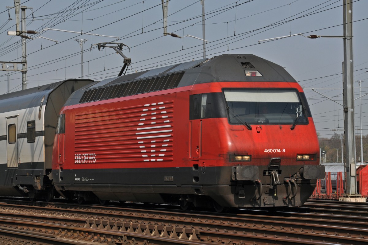 Re 460 074-8 durchfährt den Bahnhof Muttenz. Die Aufnahme stammt vom 31.03.2014.