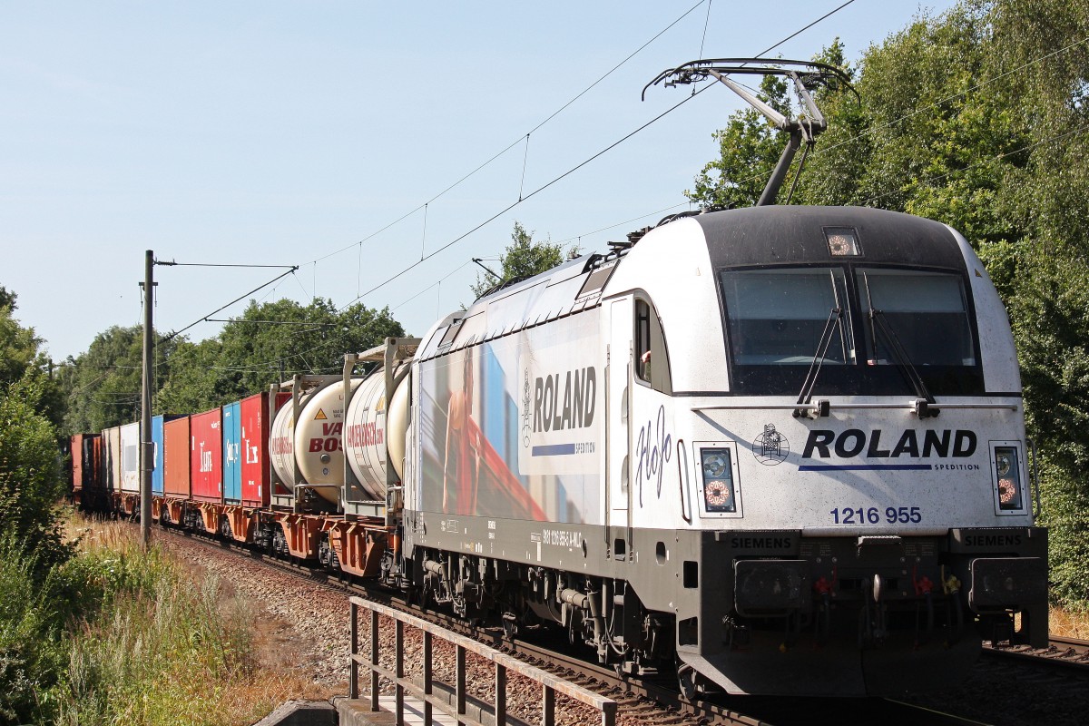 WLC 1216 955 am 22.7.13 mit einem Containerzug in Hamburg-Moorburg.