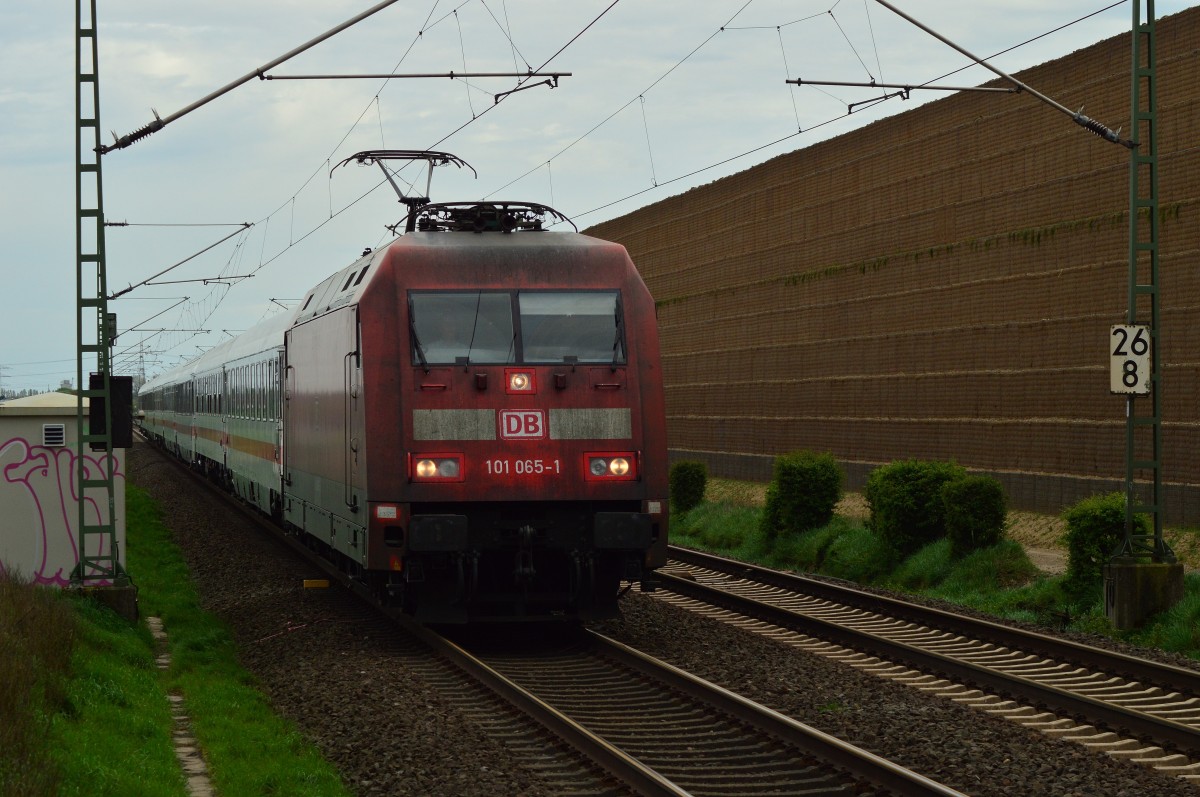 101 065-1 kommt mit einem IC aus Richtung Köln gen Neuss gefahren. Hier ist der Zug bei Allerheiligen. 6.4.2014