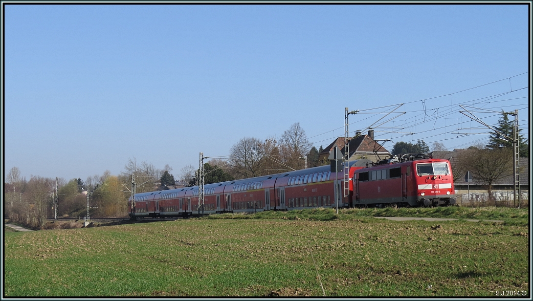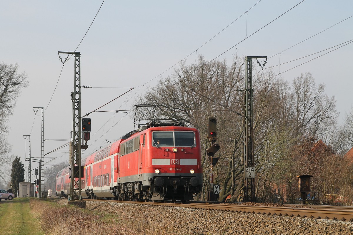 111 137-6 mit RE 14119 Emden Hauptbahnhof-Münster Hauptbahnhof bei Salzbergen am 14-3-2014.