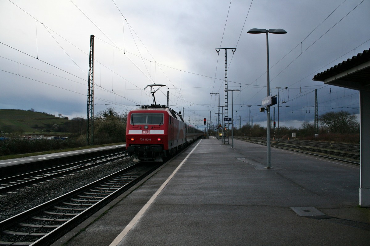120 112-8 und 120 120-1 an der Zugspitze mit dem IC 2901 am Nachmittag des 28.02.14 im Bahnhof Müllheim (Baden).