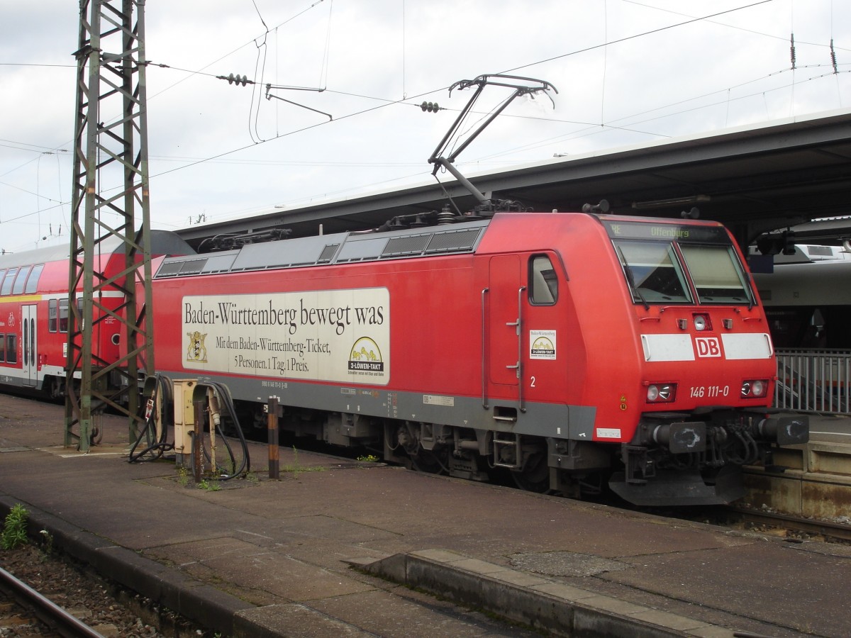 146 111-0 DB AG Baden-Wurrtemberg "3-Lowen-Takt" Offenburg August 2009 - Bahnvideos in Youtube - http://www.youtube.com/user/cortiferroviariamato/videos
