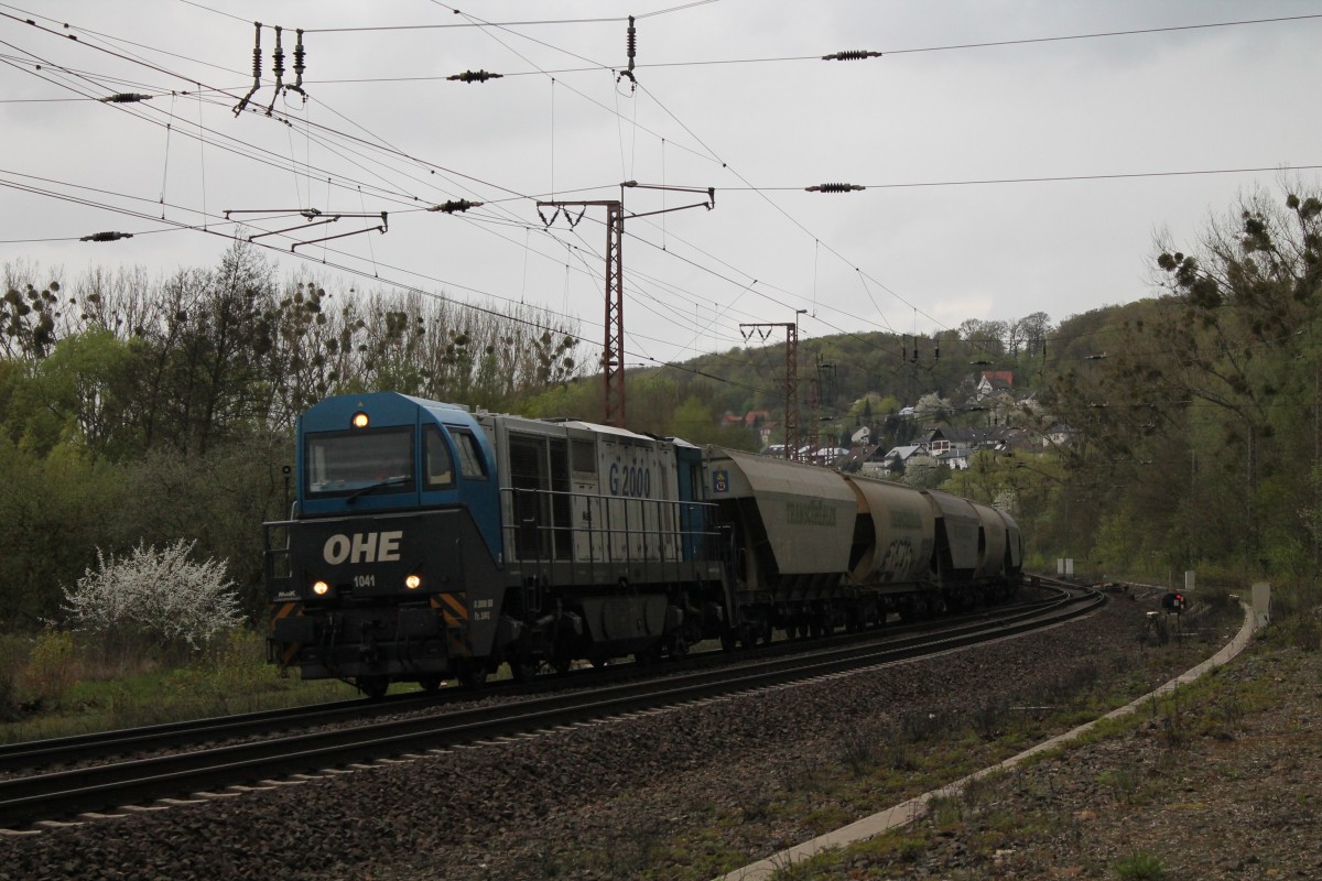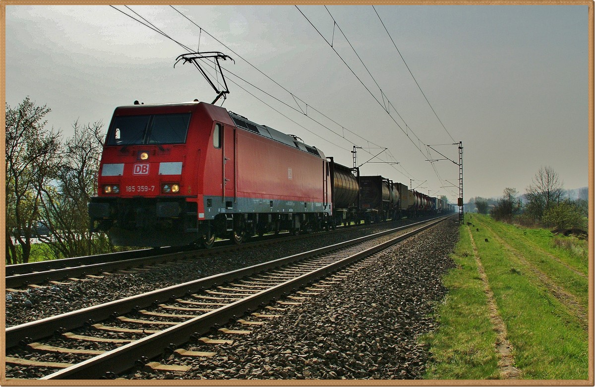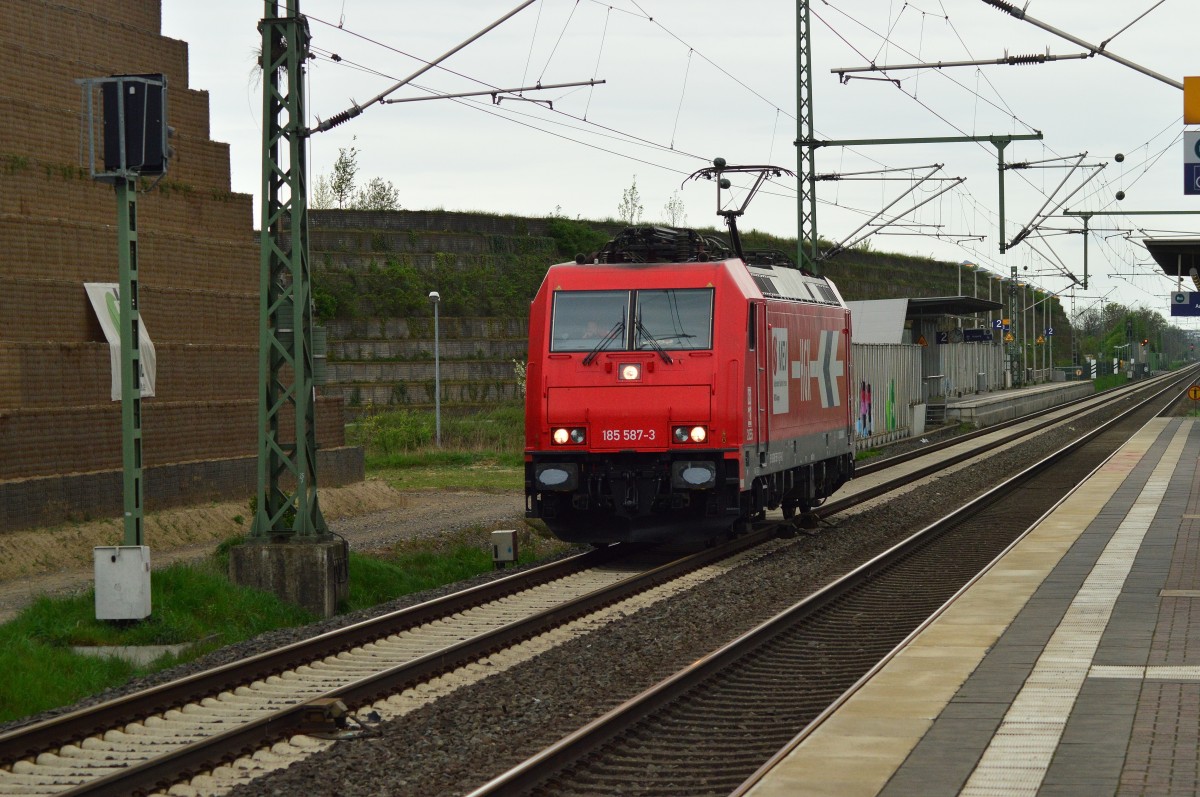 LZ kommt hier die ehemalige HGK und heutige RHC-Lok 185 587-3 bei Allerheiligen in Richtung Köln gedonnert.....anscheinend hatte es der Tf recht eilig nach Hause zu kommen. 6.4.2014