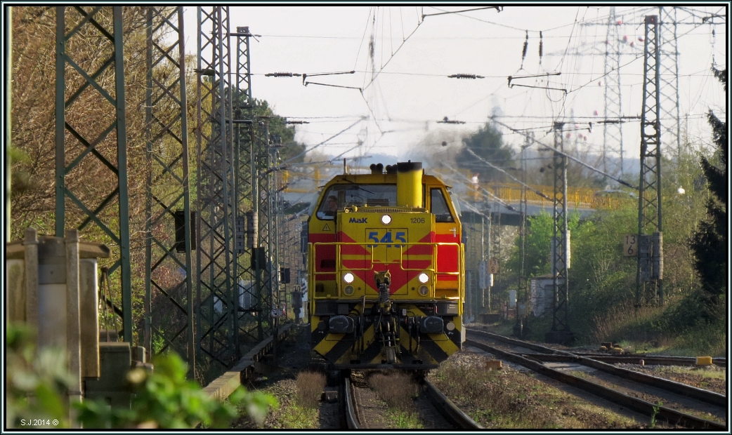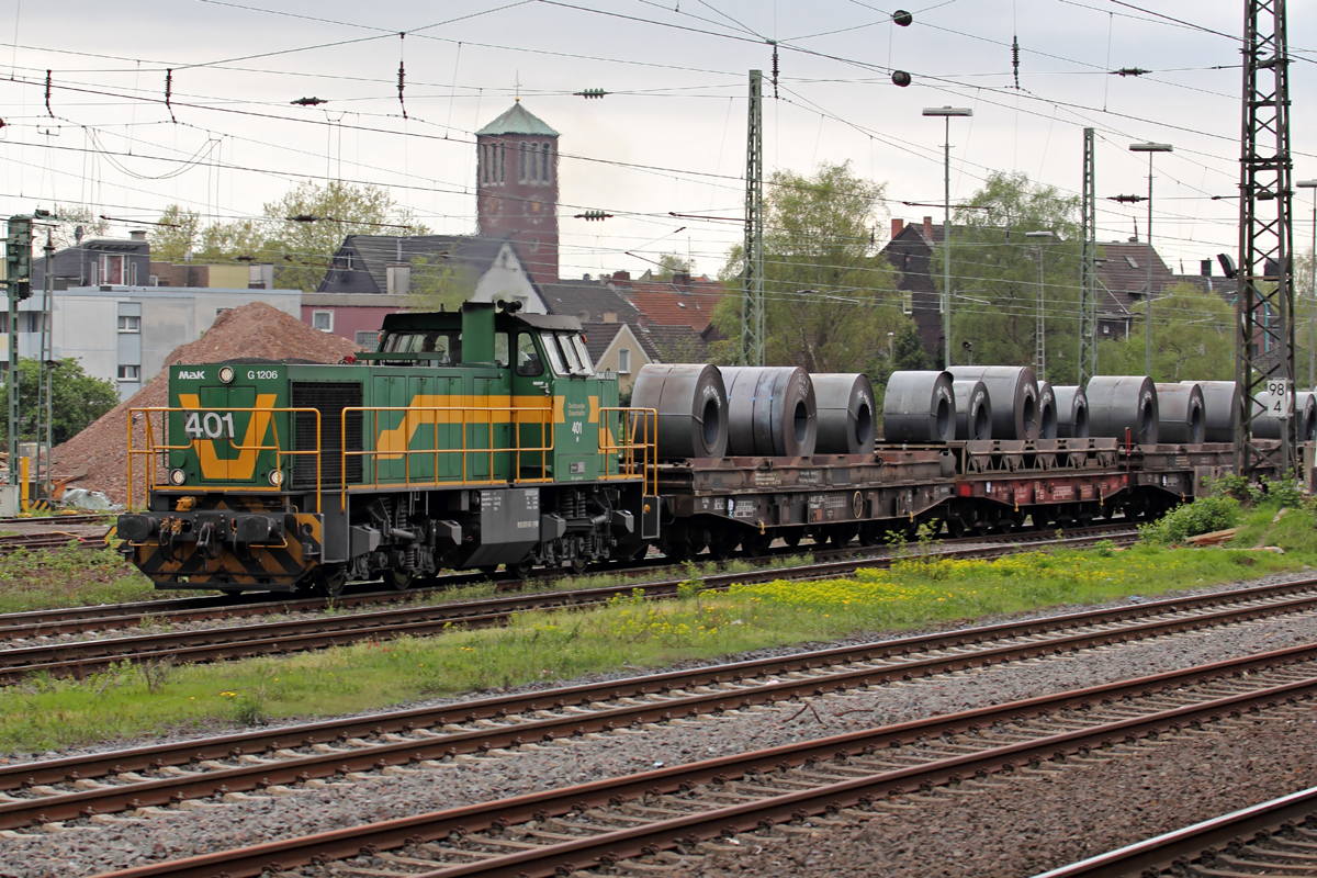 Zurück aus Wülfrath von der Angertalbahn kommend, die Mak G 1206 mit einen Kalkzug auf den Weg ins Ruhrgebiet,bildlich festgehalten in Lintorf Ratingen am 29.03.14.