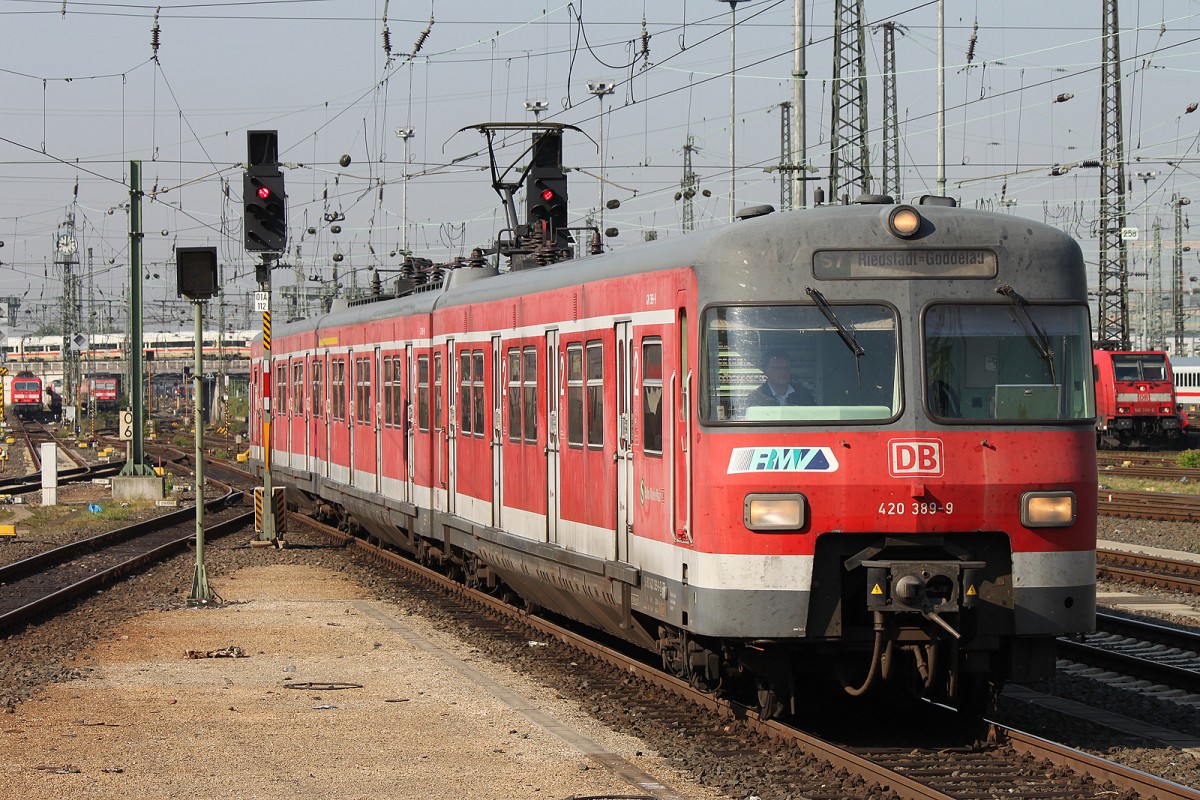 420 389 kam am 29.8.13 als S7 aus Riedstadt-Goddelau in den Frankfurter Hbf eingefahren.