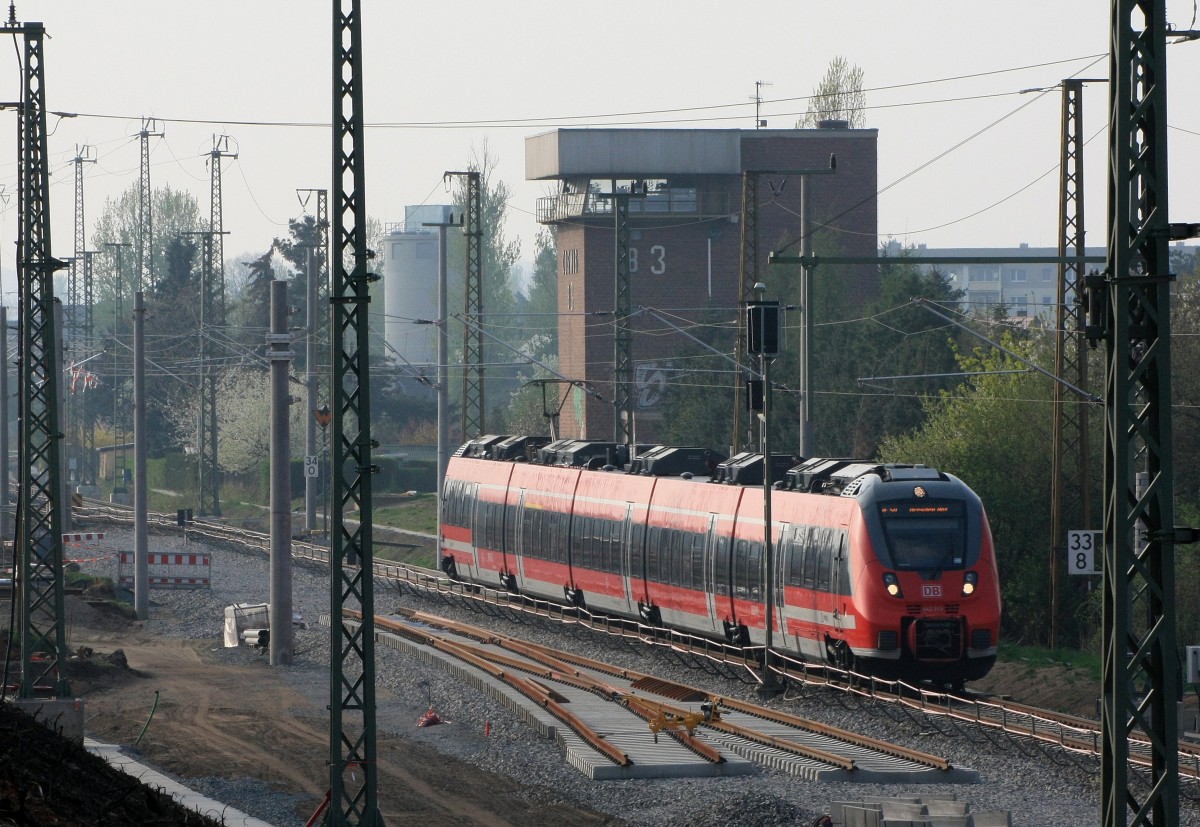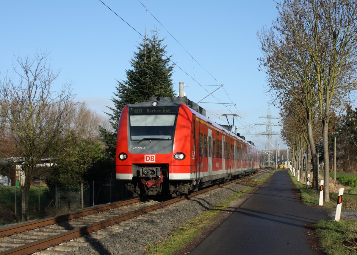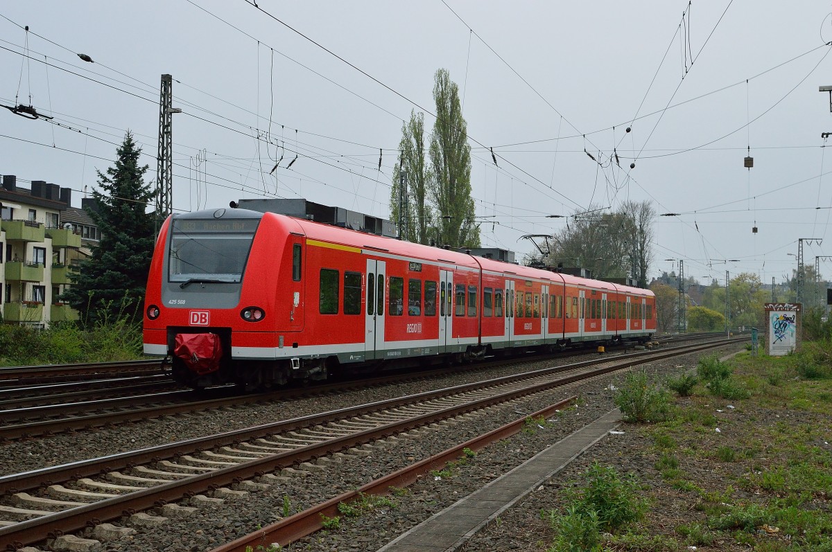 Nachschuß auf den 425 568 in Rheydt Hbf auf seinem Weg nach Aachen Hbf. 5.4.2014