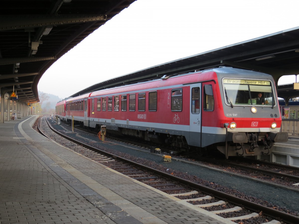 628 597 im Bahnhof von Goslar auf seinem Weg nach Braunschweig am 29.03.2014