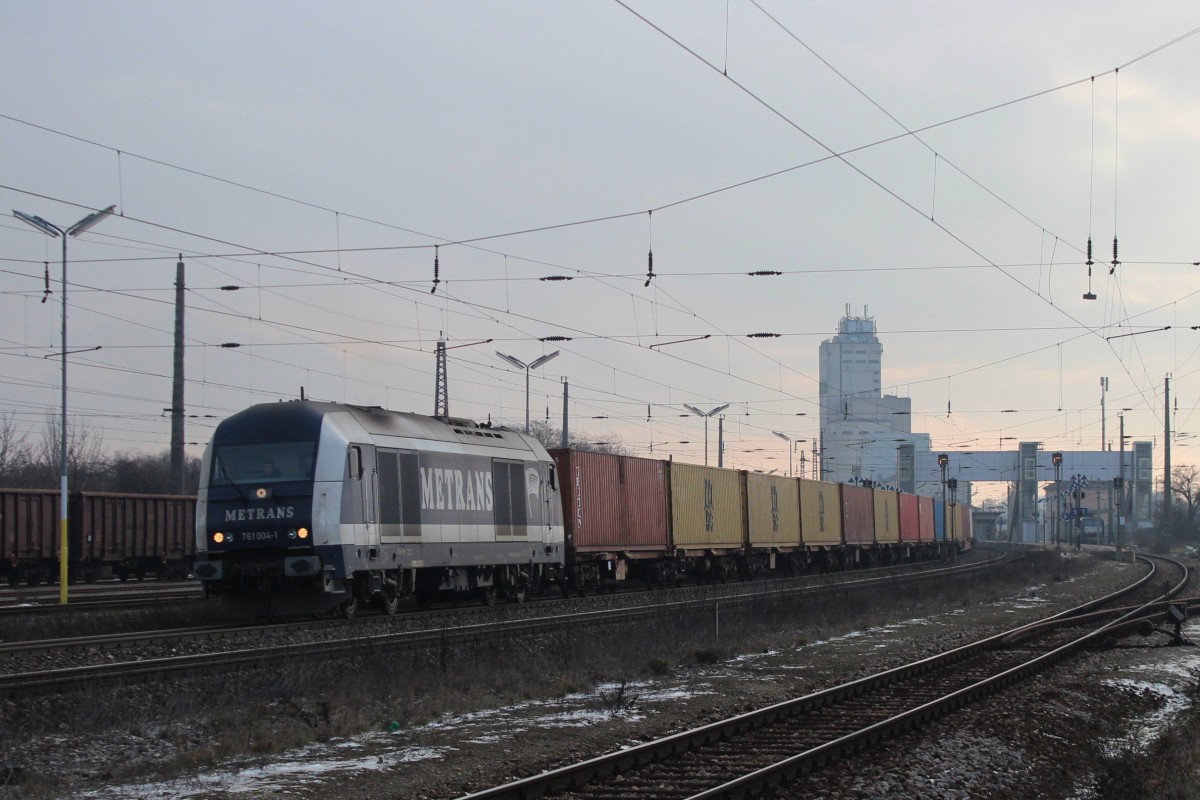 761 004 "Metrans" bei der Durchfahrt des Bahnhof Gramatneusiedl (Gn); am 05.02.2014
