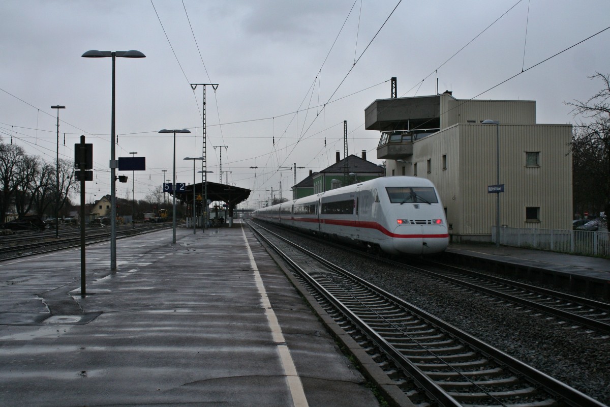808 022-8 und 402 029-3 als ICE 274 von Basel SBB nach Berlin Ostbahnhof am Nachmittag des 28.02.14 in Müllheim (Baden).