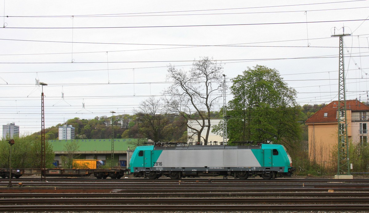 Die Cobra 2816 fährt mit einem langen Containerzug aus Gallarate(I) nach Antwerpen-Oorderen(B), aufgenommen bei der Ausfahrt aus Aachen-West in Richtung Montzen/Belgien.