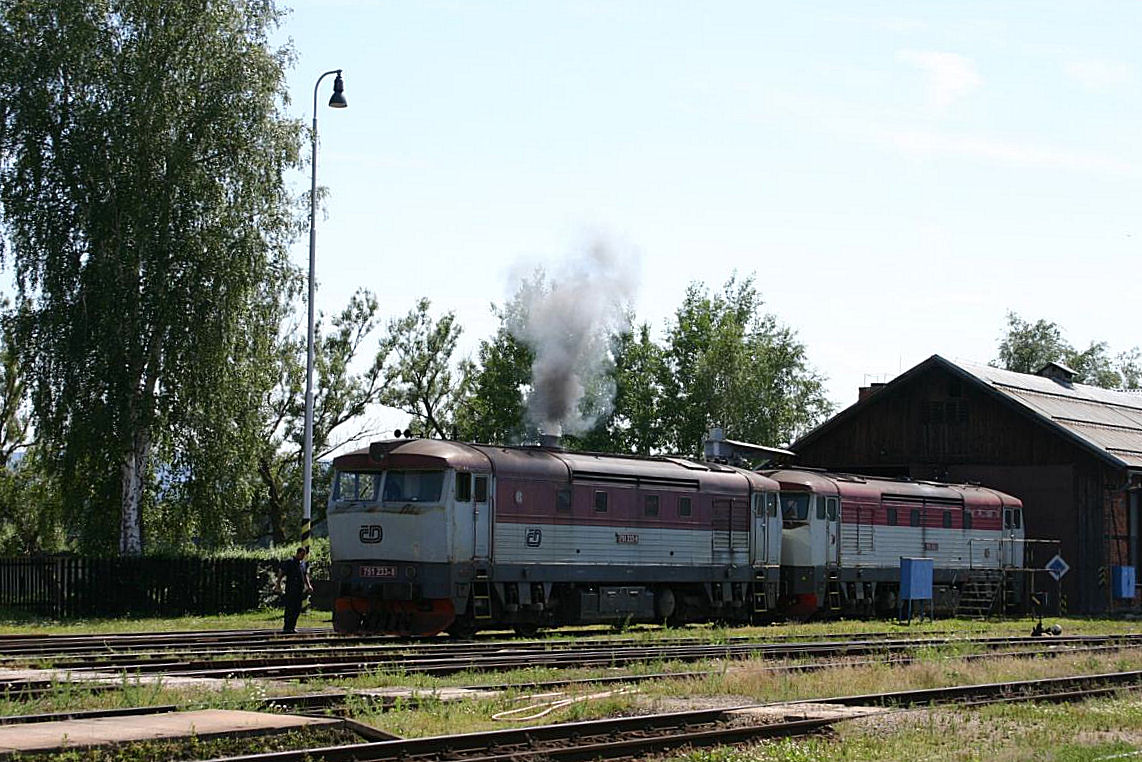 Eine dicke Rauchwolke steigt auf, als am 24.6.2007 der Lokführer die CD 751233 im kleinen Depot des Bahnhof Volary startet.