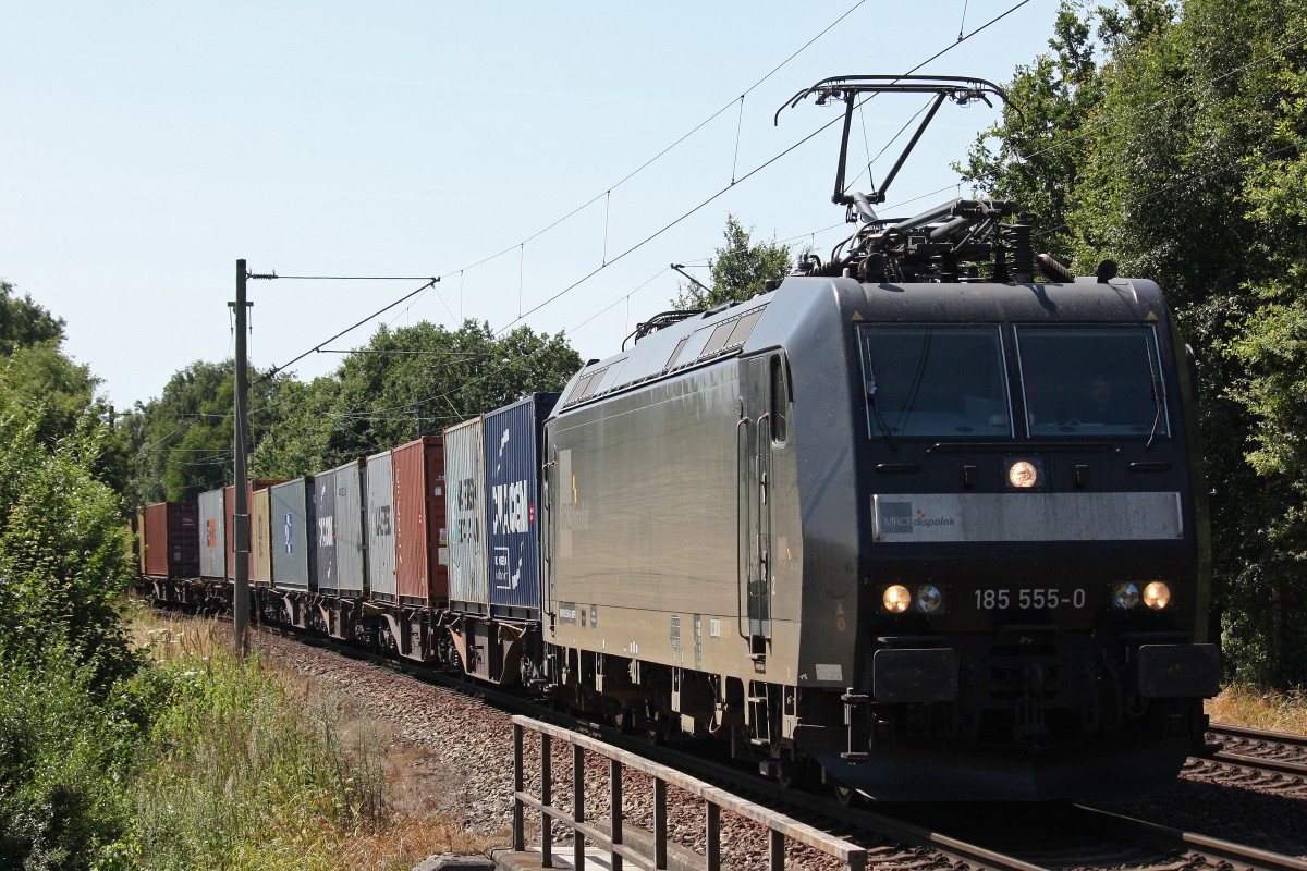 MRCE/CTL Logistics 185 555 am 22.7.13 mit einem Containerzug in Hamburg-Moorburg.