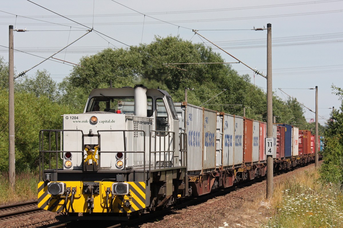 Oak-Capital/TWE 276 013 am 22.7.13 mit einem Containerzug in Hamburg-Moorburg.