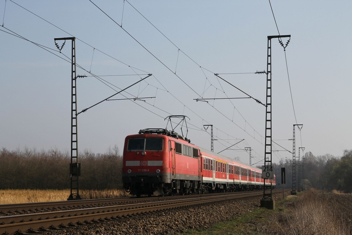 111 038-6 mit RB 31776 Münster Hauptbahnhof-Salzbergen bei Salzbergen am 14-3-2014.