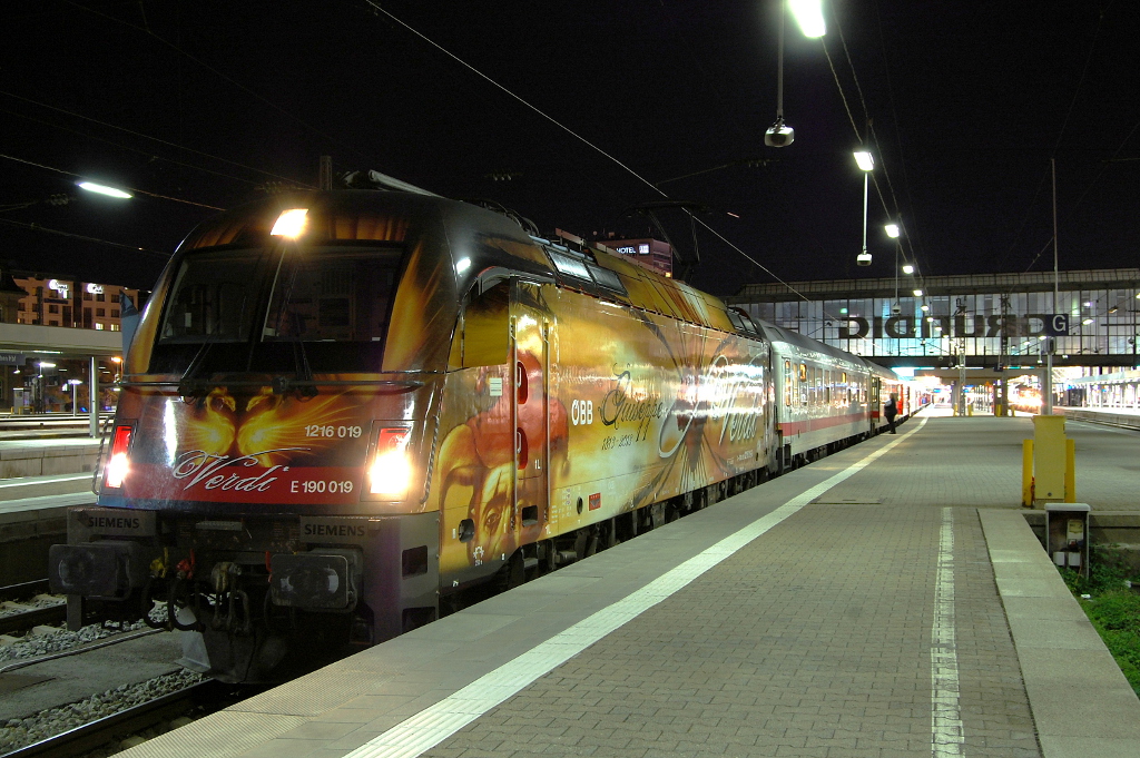 1216 019 mit CNL 418/40418 und IC 60418 nach Paris Est, Amsterdam und Stuttgart Hbf am 04.09.2013 in München Hbf