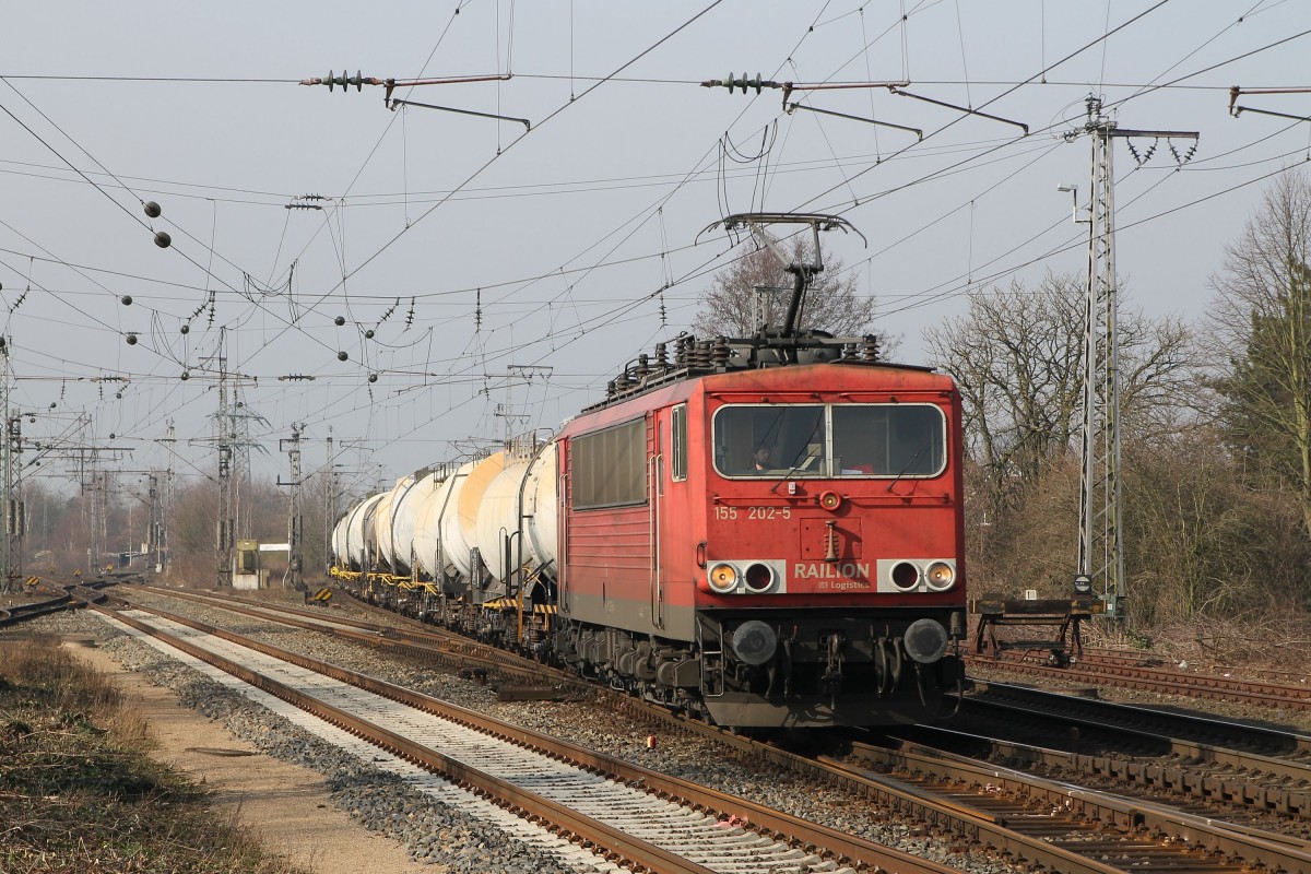 155 202-5 (Baujahr: 1983) mit einem Güterzug von Emden auf Bahnhof Salzbergen am 14-3-2014.