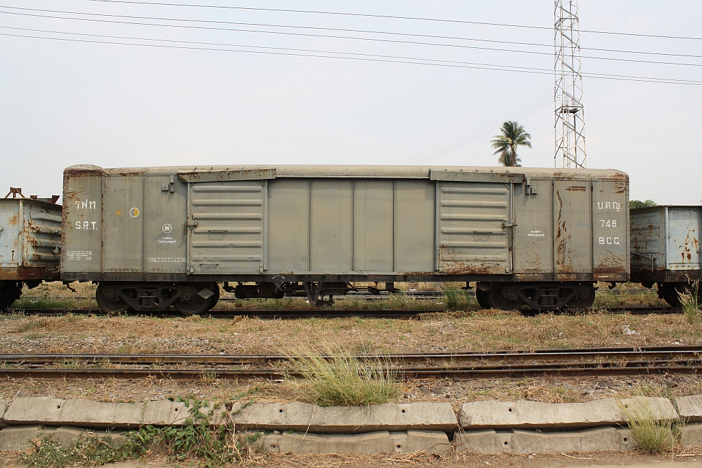บ.ต.ญ. 748 (บ.ต.ญ.=B.C.G./Bogie Covered Goods Wagon, Makassan Workshop, Bauj. 1971) am 22.März 2014 im Bf. Kaeng Khoi Junction.