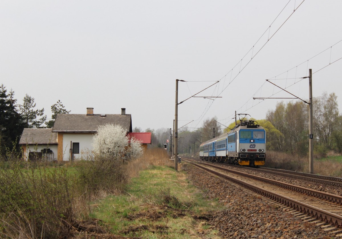 Die 362 062 mit einem R nach Prag am 29.03.2014 unterwegs bei Chotíkov.