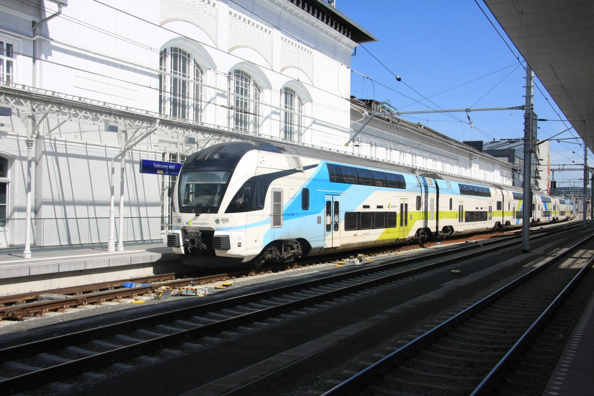 Am Abend des 13.03.2014 fährt ein Siemens Desiro ML (BR 460) soeben in den Kölner Hauptbahnhof ein.