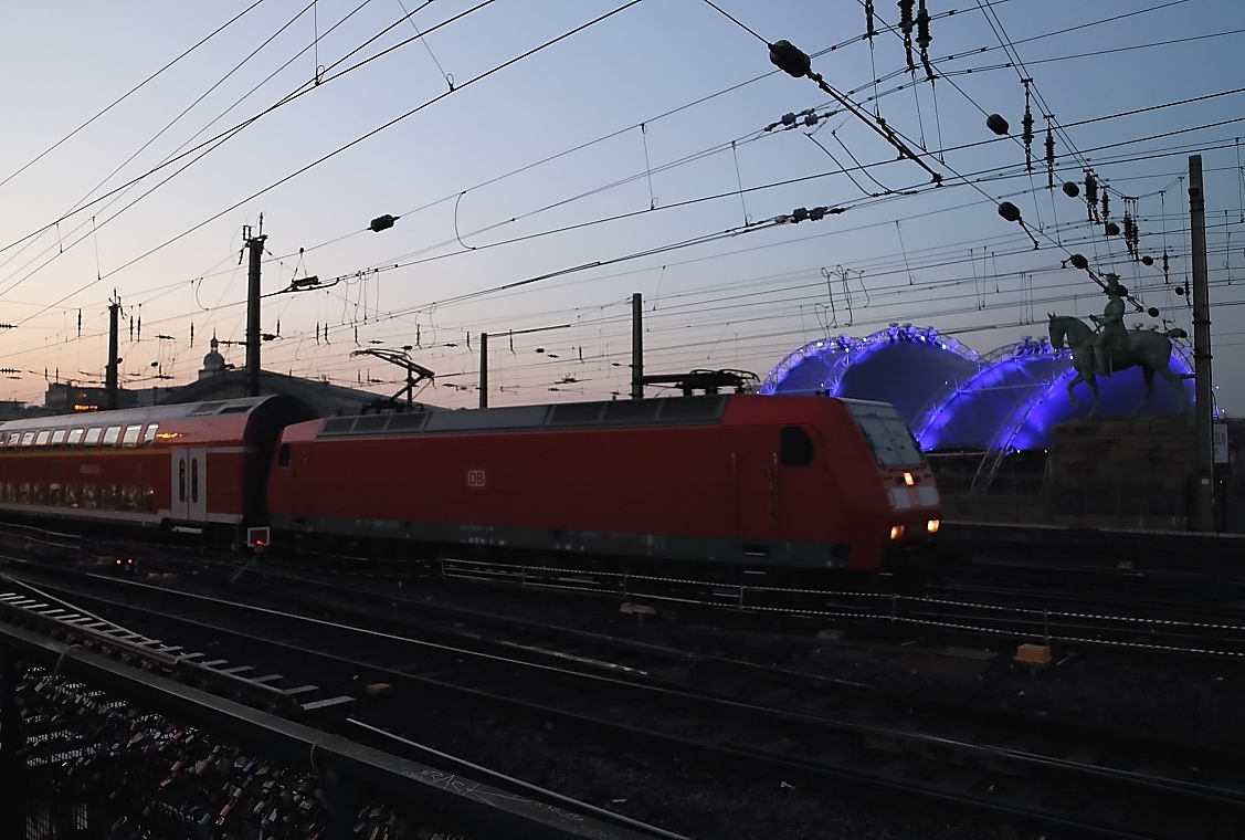 Ein Regionalzug verläßt am Abend des 13.03.2014 den Kölner Hauptbahnhof.